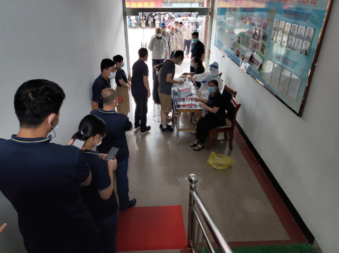 上午10:30全體員工有秩序的排隊(duì)等待檢測(cè),公司2名行政人員負(fù)責(zé)登記、1名社區(qū)工作者在現(xiàn)場(chǎng)宣傳引導(dǎo),僅用半小時(shí)完成公司所有員工的核酸檢測(cè)任務(wù),為企業(yè)安心發(fā)展提供強(qiáng)力支持和貼心服務(wù)。