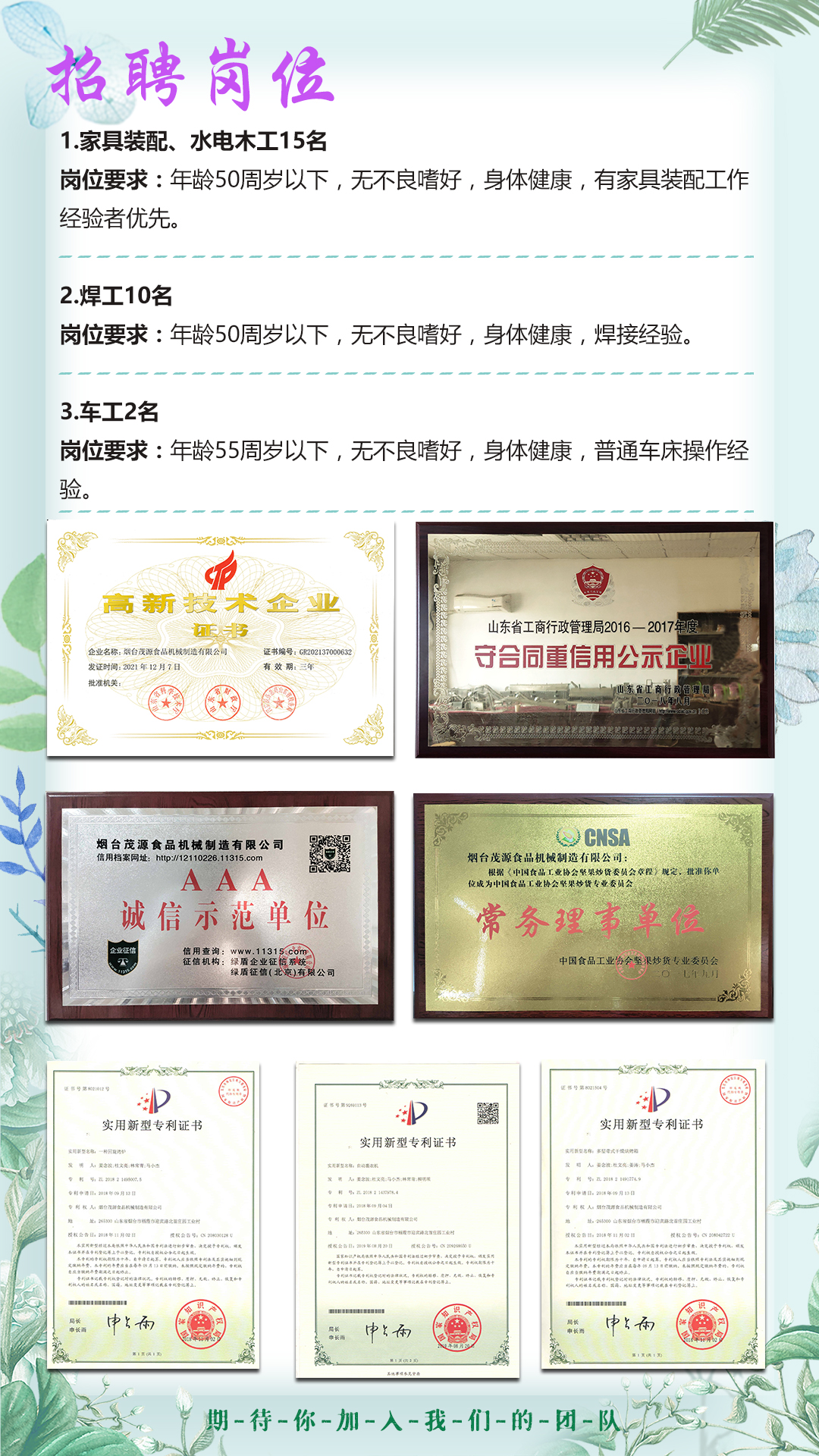 煙臺(tái)茂源食品機(jī)械2022春季招聘開啟!