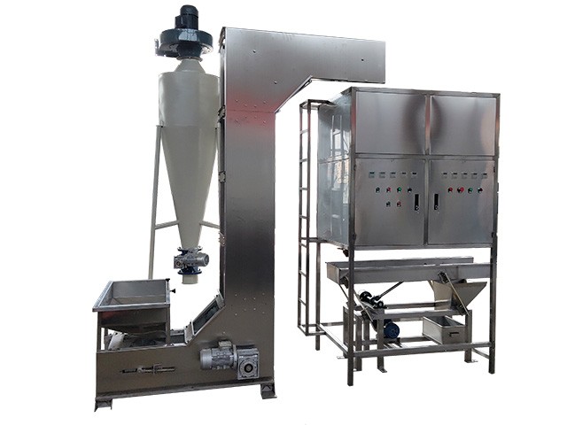 該機采用氣動原理,全自動數(shù)字控制,將炒熟或者烘干后的堅果仁及籽仁進行無損脫皮,脫皮率高、脫皮后光滑無傷、皮和仁自動分離。